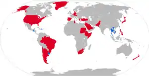 During the early 1960s, Argentina received five M41s on ostensibly permanent loan from the United States.[30] The terms of the transfer remain unclear, as despite formally entering service with the Argentine Army the five tanks were still listed as property of the American government.[30] They were first publicly paraded in Buenos Aires following the 1966 revolution.[30] Upon a subsequent deterioration of diplomatic relations with the US, Argentine leaders ordered the tanks returned to that country.[30] They were superseded in Argentine service by the AMX-13, and a proposal to purchase or request the loan of more M41s from the US was permanently shelved.[30]