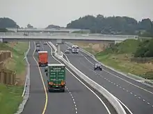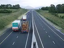 Construction of this 16 km scheme started in December 2007. The section opened to traffic on 25 May 2009, some nine months ahead of the original target completion date.[19] Like the Cashel-Cullahill project, the Fermoy-Mitchelstown scheme was redesignated a motorway during its construction, having originally been envisaged as a HQDC.[20] It was built by Roadbridge Ltd. at a cost of €174 million.[19][21]