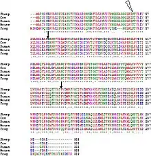 | * | asterisk | Conserved sequence (identical) |