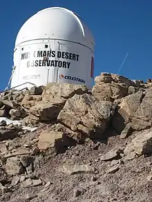 The Musk Mars Desert Observatory houses a 28-centimetre (11 in) Schmidt-Cassegrain telescope, donated by Celestron. The telescope is capable of being operated remotely, and is accessible to amateur and professional astronomers via the internet. The observatory's other sponsors include Le Sueur Manufacturing Inc., which provided the Astro-Pier on which the telescope is mounted; Software Bisque, which provided TheSky software; Vince Lanzetta of East Coast Observatories; Adirondack Video Astronomy; High Point Scientific; Technical Innovations; and the Lehigh Valley Amateur Astronomical Association.