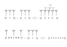 In order to make a comparison between phased array radars and MIMO radars, the relationship between transmit/receive antenna arrays and virtual arrays are discussed in several sources.[3][4][5] If the placements of the transmit and receive antenna array are expressed as two vectors and respectively, the placement vector of the virtual array is equal to the convolution of and :