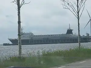 M/S RG I (IMO 8306577) was a passenger/cargo ship which was last owned by the Finnish shipping company RG Line. The ship was a ro-ro ship.[3] The ship was built in 1983 at the VEB Mathias Thesen Werft shipyard in Wismar, East Germany. The ship had a dead weight of 6704 tonnes.[4] RG I was last registered in Finland and its homeport was in Vaasa. The ship travelled across the Kvarken between Vaasa, Finland and Umeå, Sweden up to 2012. The travel time was four hours[2] and the ship used Finnish time.[5] The ship carried 300 passengers.[2]