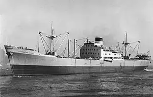 Hannington Court sailed for the Court Line, under the management of Haldin & Company, until 1963, when she was sold to the Indian shipping company Jayanti Shipping Co. Ltd, based in Bombay. The company renamed her Gandhi Jayanti, and she spent the next four years sailing for them.[1] Sold to Shipping Corporation of India in 1967, she retained her name until 1974, when she was renamed Gandhi. Her career almost over by this point, she sailed for another two years before being sold off for scrap. She arrived at Universal Shipbreakers Ltd, Bombay, in April 1976 and was broken up.[1]