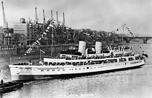 The ship, built for continental trips from Tower Pier, commenced her service on 28 April 1939 with a sailing to Calais.[4] On the outbreak of World War II in September 1939 she was quickly requisitioned by the Sea Transport Department of the Board of Trade.