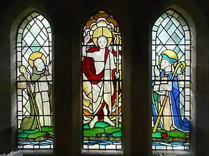 ![]() Mael (left) depicted with Sulien (right) as co-patron of Corwen, with Christ in the centre. | |