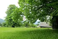 The local church, dedicated to Saint Anne, was built on the top of Hunter's Peak (Slovene: Lovski vrh, German: Annaberg 'Mount Saint Anne'[14]:193) north of the settlement. It is also a site of a prehistoric Iron Age settlement. The pilgrimage church, a 16th-century building that survived the Second World War, was demolished in 1953 or 1954.[16] A chapel-shrine dedicated to Saint Anne was erected next to the site of the former church in 2003.[14]:193