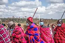 The Maasai (/ˈmɑːsaɪ, mɑːˈsaɪ/;[3][4] Swahili: Wamasai) are a Nilotic ethnic group inhabiting northern, central and southern Kenya and northern Tanzania. They are among the best-known local populations internationally due to their residence near the many game parks of the African Great Lakes and their distinctive customs and dress.[5] The Maasai speak the Maa language (ɔl Maa),[5] a member of the Nilotic language family that is related to the Dinka, Kalenjin and Nuer languages. Except for some elders living in rural areas, most Maasai people speak the official languages of Kenya and Tanzania, being Swahili and English.[6] The Maasai population has been reported as numbering 1,189,522 in Kenya in the 2019 census,[1] compared to 377,089 in the 1989 census, though many Maasai view the census as government meddling and therefore either refuse to participate or actively provide false information.[7][8][9]
