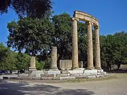 After campaigning against the Thracian ruler Cersobleptes, in 349 BC, Philip II began his war against the Chalcidian League, which had been reestablished in 375 BC following a temporary disbandment.[72] Despite an Athenian intervention by Charidemus,[73] Olynthos was captured by Philip II in 348 BC, and its inhabitants were sold into slavery, including some Athenian citizens.[74] The Athenians, especially in a series of speeches by Demosthenes known as the Olynthiacs, were unsuccessful in persuading their allies to counterattack and in 346 BC concluded a treaty with Macedonia known as the Peace of Philocrates.[75] The treaty stipulated that Athens would relinquish claims to Macedonian coastal territories, the Chalcidice, and Amphipolis in return for the release of the enslaved Athenians as well as guarantees that Philip II would not attack Athenian settlements in the Thracian Chersonese.[76] Meanwhile, Phocis and Thermopylae were captured by Macedonian forces, the Delphic temple robbers were executed, and Philip II was awarded the two Phocian seats on the Amphictyonic Council and the position of master of ceremonies over the Pythian Games.[77] Athens initially opposed his membership on the council and refused to attend the games in protest, but they eventually accepted these conditions, perhaps after some persuasion by Demosthenes in his oration On the Peace.[78]