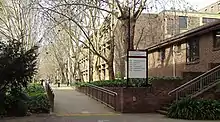 In 1973 the student union (MUSC) worked with the Builders Labourers Federation (BLF) to organise one of the first "pink bans".[18] Similar in tactic to the green ban, the pink ban was recommended when one of the residential colleges at Macquarie University, Robert Menzies College, ordered a student to lead a celibate life and undertake therapy and confession to cure himself of his homosexuality. The BLF decided to stop all construction work at the college until the university and the college Master made statements committing to a non-discriminatory university environment. MUSC was successful in engaging with the BLF again in 1974 when a woman at Macquarie University had her NSW Department of Education scholarship cancelled on the basis that she was a lesbian and therefore unfit to be a teacher.[19]