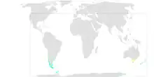 The range of this bird is quite large as it ranges from Antarctica to the subtropics of Chile, Africa, and Australia,[12][13] and has an occurrence range of 36,000,000 km2 (14,000,000 sq mi). It breeds on numerous islands throughout the southern oceans. The islands with larger populations include the Falkland Islands, South Georgia, South Orkney Islands, Staten Island, South Shetland, Heard Island, Macquarie Island, the Prince Edward Islands, and the Crozet Islands. The other locations with small populations are the Kerguelen Islands, Gough Island, Tristan da Cunha, Diego Ramirez, Isla Noir as well as four locations on the continent of Antarctica, including Terre Adélie, and small islands off the coast of Argentina near Chubut Province.[11] The colonies are visited year round.[12]