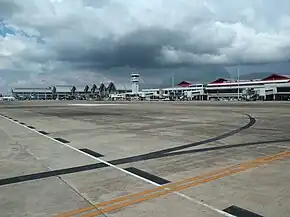 The airport has a single 3,300-meter (10,800 ft) runway with a width of 45 meters (148 ft) that was built by the United States in 1956 as an emergency airport for U.S. Air Forces' Strategic Air Command bombers and was known as Mactan Air Base.[4] The runway is complemented by a full-length taxiway that it shares with the current Mactan Air Base of the Philippine Air Force.