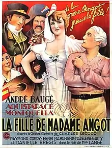 Madame Angot's Daughter (French: La fille de Madame Angot) is a 1935 French musical comedy film directed by Jean Bernard-Derosne and starring André Baugé, Jean Aquistapace and Raymond Cordy.[1] It also featured early screen appearances by Arletty and Madeleine Robinson. It is based on the 1872 comic opera Madame Angot's Daughter.