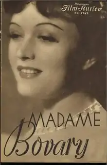 Madame Bovary is a 1937 German historical drama film directed by Gerhard Lamprecht and starring Pola Negri, Aribert Wäscher and Ferdinand Marian. It is an adaptation of Gustave Flaubert's 1857 novel Madame Bovary.[1] It was shot at the Babelsberg Studios in Potsdam. The film's sets were designed by the art director Otto Moldenhauer.