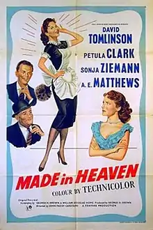 Made in Heaven is a 1952 British Technicolor comedy film directed by John Paddy Carstairs which stars David Tomlinson, Petula Clark and Sonja Ziemann.[1][2] The screenplay was based on a story by William Douglas-Home. It was shot at Pinewood Studios outside London. The film's sets were designed by the art director Maurice Carter.