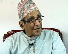 Madhav Prasad Ghimire (Nepali: माधव प्रसाद घिमिरे; 23 September 1919 – 18 August 2020) was a Nepali poet and scholar. He was honoured as the Rashtrakavi (National Poet) by the Government of Nepal in 2003. Some of his acclaimed works include Gauri, Malati Mangale, Shakuntala and Himalwari Himalpari.[2][3][4]