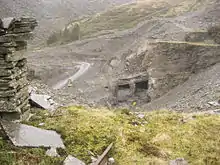 ![]() The abandoned Maenofferen slate cutting mill, seen from the Rhiwbach Tramway No. 3 incline, 2007 | |