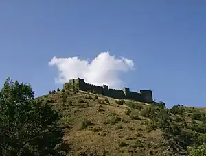 Maglič (Serbian Cyrillic: Маглич, pronounced [mâɡlitʃ]) is a 13th-century castle about 20 kilometres (12 mi) south of Kraljevo, Serbia. The castle is located atop a hill around which the Ibar river makes a curve, about 100 metres (330 ft) above the river. The fortress protected the only road that connected the Great Morava Valley and Kosovo polje. Its name means 'the foggy one' from Serbian магла (magla) 'fog'.[1]