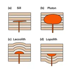- 1 2 3 4 Galland, O.; Bertelsen, H. S.; Eide, C. H.; Guldstrand, F.; Haug, Ø. T.; Leanza, Héctor A.; Mair, K.; Palma, O.; Planke, S. (2018-01-01). "Storage and Transport of Magma in the Layered Crust—Formation of Sills and Related Flat-Lying Intrusions". In Burchardt, S. (ed.). Volcanic and Igneous Plumbing Systems: Understanding Magma Transport, Storage, and Evolution in the Earth's Crust. Elsevier. pp. 113–138. doi:10.1016/b978-0-12-809749-6.00005-4. ISBN 978-0-12-809749-6. Retrieved 2021-11-12.