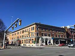 The Mahaiwe Block is a commercial and theater building in the heart of downtown Great Barrington, Massachusetts. In addition to smaller businesses, it houses the Mahaiwe Performing Arts Center, the town's only major performance space. It has been in virtually continuous operation since its construction in 1905. The building is located at 6-14 Castle St. and 314-322 Main St, and is listed on the National Register of Historic Places.