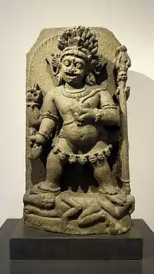 In Buddhism, Mahākāla is regarded as a Dharmapāla ("Protector of the Dharma") and a wrathful manifestation of a Buddha, while in Hinduism, Mahākāla is a fierce manifestation of the Hindu god Shiva and the consort of the goddess Mahākālī;[1] he most prominently appears in the Kalikula sect of Shaktism.[2][3][4]
