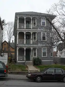 The history of the Main South neighborhood began when, in the 1840s, congressman Eli Thayer, a prominent abolitionist, bought land in southern Worcester in anticipation of rapid economic development. Thayer sold the land without extensive development in order to finance the New England Emigrant Aid Company, which sent abolitionist settlers to Kansas Territory in order to ensure that it would not become a slave state. Development began in the 1850s. In the 1880s, industrialist Jonas Gilman Clark bought land and founded Clark University in 1887.[1] The Main South area has a history as a rough neighborhood, known for prostitution and hard drugs starting in the 1970s and that impression has stuck with the area, despite the fact that the Worcester Police Department has done a great deal to reduce the drug trade, and there has been some fairly successful urban renewal projects, particularly involving Clark University.