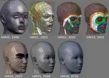 • The first professional mesh (HM01) for a human model was realized by Enrico Valenza in 2002.