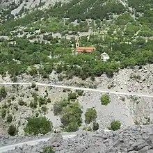 The Malësors (Albanian highlanders) live within northern Albania and historically Malësia e Madhe (great highlands) contained five large tribes with four (Hoti, Kelmendi, Shkreli, Kastrati) having a Catholic majority and Muslim minority with Gruda evenly split between both religions.[6] Within Malësia e Madhe there were an additional seven small tribes.[6] During times of war and mobilisation of troops, the bajraktar (chieftain) of Hoti was recognised by the Ottoman government as leader of all forces of the Malësia e Madhe tribes having collectively some 6,200 rifles during the late Ottoman period.[6] Malësia e Vogël (small highlands) with seven Catholic tribes such as the Shala with 4 bajaraktars, Shoshi, Toplana and Nikaj contained some 1,250 households with a collective strength of 2,500 men that could be mobilised for war.[6] Shoshi had a distinction in the region of possessing a legendary rock associated with Lekë Dukagjini.[6]