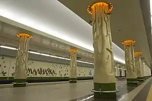 Malinawka (also referred to as Malinaŭka or Malinovka) (Belarusian: Малінаўка; Russian: Малиновка, romanized: Malinovka) is a Minsk Metro station. It was opened on June 3, 2014. Architectural elements of the station were enhanced by the work of sculptor Maxim Piatrul