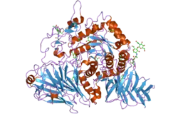 - 1 2 3 Sim L, Quezada-Calvillo R, Sterchi EE, Nichols BL, Rose DR (January 2008). "Human intestinal maltase-glucoamylase: crystal structure of the N-terminal catalytic subunit and basis of inhibition and substrate specificity". Journal of Molecular Biology. 375 (3): 782–92. doi:10.1016/j.jmb.2007.10.069. PMID 18036614.