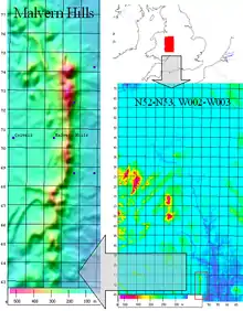 {{cite journal}}: Cite journal requires|journal=(help) - ↑ "Special Features – Landscape". Malvern Hills AONB. Archived from the original on 1 August 2013. Retrieved 9 April 2012.