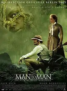 Man to Man is a 2005 historical drama film directed by Régis Wargnier and starring Joseph Fiennes, Kristin Scott Thomas and Iain Glen. The screenplay concerns a man in a team of Victorian scientists conducting research in Africa, who begins to have doubts about the human cost of their mission. It was scripted by William Boyd.