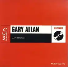 "Man to Man" is a song written by Jamie O'Hara and recorded by American country music artist Gary Allan. It was released in September 2002 as the third and final single from Allan's 2001 album Alright Guy. The song became his first number one hit on the U.S. Billboard Hot Country Songs chart in March 2003 and peaked at number 25 on the Billboard Hot 100.