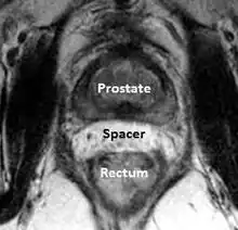 A new method to reduce rectal radiation injury in prostate cancer patients involves the use of an absorbable spacer placed between the prostate and rectum.