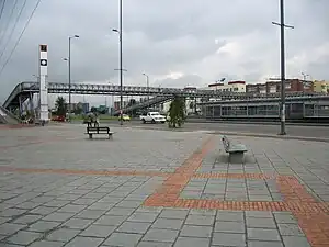 The simple station Mandalay is part of the TransMilenio mass-transit system of Bogotá, Colombia, which opened in the year 2000.