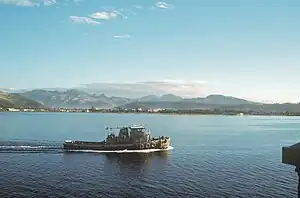 ![]() Starboard broadside view of Mandan (YTB-794) underway in the harbor at Naval Station Subic Bay, Luzon, Philippines, 8 December 1990 | |