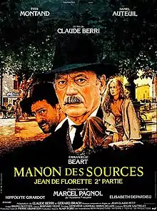 Manon des Sources (French pronunciation: [manɔ̃ de suʁs]; meaning Manon of the Springs) is a 1986 French language period film. Directed by Claude Berri, it is the second of two films adapted from the 1966 two-volume novel by Marcel Pagnol, who wrote it based on his own earlier film of the same title. It is the sequel to Jean de Florette.[1][2][3]