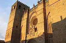 On 21 April 1154 Manrique and Ermessinde issued a sweeping fuero to the town of Molina de Aragón.[25] The document survives only in a thirteenth-century copy, and it may have been amended in light of later twelfth-century fueros, although much of its material has precedents in the early twelfth century. It lists the privileges of the inhabitants, the rents owed to Manrique, a list of officials who would serve on the municipal council and an extensive legal code.[26] A large portion of the law deals with the formation of the local militia. Knights (caballeros) who lived in the town with their families for a certain period of the year were exempted from taxes. A fifth of the booty taken by the local militia in war was to go to Manrique, and those who skipped out on their military obligations were fined. Unprecedentedly (and perhaps suspiciously), a maintenance was paid to those who captured Muslim leaders in battle and had to temporarily support them before they were handed over to the king. The fuero also mandated watchtower duty, a medical allowance for wounds received in war, the use of battle standards, and standards of military equipment for both cavalry and infantry. Also without precedent is a law requiring all those with a certain amount of wealth to purchase a horse and serve in the militia as a knight. If the thirteenth-century copy is accurate to the original, the fuero of Molina marks a transition in the customary law martial law of the peninsula, especially of Castile and Aragon.[27] The semi-independent nature of the rule of Manrique and his successors at Molina has been likened to the rule of Rodrigo Díaz de Vivar at Valencia two generations earlier and to the contemporary rule of Pedro Ruiz de Azagra in Albarracín. Manrique even used the formula Dei gratia comes ("count by the grace of God"), implying that his power did not derive from the king.[28] When the lordship passed to the crown through the marriage of María de Molina and Sancho IV, Molina was retained as a subsidiary title until the time of Isabel II.[29]