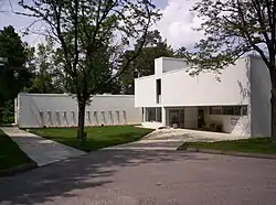 The Mansfield Art Center is an art center in the Woodland neighborhood of Mansfield, Ohio, United States. The art center is operated by the Mansfield Fine Arts Guild, which was founded as a non-profit arts organization in 1945. Prior to the opening of the center, the guild presented exhibits and classes in private spaces but demand increased and the guild had temporary homes throughout the 1950s and 1960s that included the Mansfield/Richland County Public Library, the Leland Hotel and Kingwood Center.[1][2] H. Daniel Butts III was hired as the guild's first full-time director and he was tasked with establishing a permanent home for the museum, its collection and classes. The building opened in 1971 and was designed by architect Don Hisaka. In the same year, it was the recipient of a Progressive Architecture National Citation Award.[3]