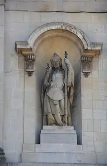 He erected two churches in Toul: one in honor of St. John the Baptist, and the other dedicated to the Blessed Virgin and Saint Stephen. The latter became the cathedral, later rebuilt by Gerard of Toul.[4] Mansuetus spent nearly four decades preaching in the Leuci region, which efforts were met with considerable success.[5] He is regarded as the "Apostle of Lorraine".[6] According to most accounts, he died on 3 September 375.[7] He was initially buried in the oratory of St. Peter, which became a site of pilgrimage. It is said, Martin of Tours visited the shrine.[4]