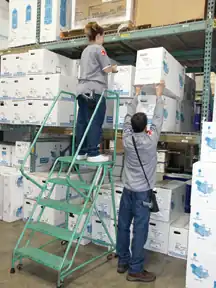 Forklifts are powered vehicles (gas, diesel, electric) that are often used in facilities to move heavy items. The truck can pick up significantly heavier objects compared to the human and move it to a new location. Since the forks can be adjusted, the height of the lift can also be adjusted so that employees can lift in a more neutral position. The use of forklifts can eliminate or reduce some exposures of manual material handling.