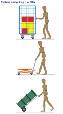 Manual material handling may require pushing or pulling. Pushing is generally easier on the back than pulling. It is important to use both the arms and legs to provide the leverage to start the push.[16]