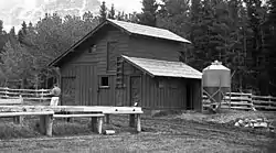 The Many Glacier Barn and Bunkhouse in Glacier National Park, also known as Packer's Roost East, were constructed to serve backcountry pack trail activities near the Many Glacier Hotel. The barn was designed in 1938 by the National Park Service Branch of Plans and Design to replace a barn that had burned in the Swiftcurrent Valley fire of 1936, using a simplified form of the National Park Service Rustic style. The bunkhouse was built nearby, then moved directly adjacent to the barn.[2][3]
