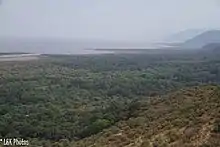 Grasslands are dominated by Cynodon dactylon in dry locations, or by Sporobolus spicatus, often in association with Sporobolus consimilis on the alkaline lake flats. Sporobolus spicatus is dominant on exposed lakebed and can be very extensive during low lake levels, becoming restricted to a narrow zone above the high water mark when lake levels are high. There are extensive areas of Psilolemma jaegeri grasslands outside the park, along the eastern shore of the lake.[13] Vegetation on the escarpment is characterized by Ruellia megachlamys and African baobab trees (Adansonia digitata).[6]