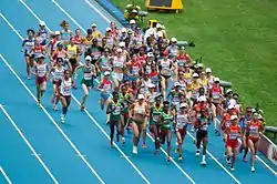 ![]() Women starting the 2013 marathon on the track | |