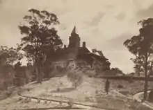The first Vice-Regal country residence was built at Government Farm, Belair in 1860. Although well-appointed for its time, it was a relatively modest structure, and several governors found it too small for their purposes.[12] When Governor William Jervois arrived in 1877, he very soon proposed the construction of a new and grander building.[13] He was instrumental in securing government expenditure, and also personally oversaw the selection of a site and directed the design process. The first stone was laid on 18 July 1878, and the structure was completed and furnished in late 1879.[5] A budget overrun led the Hon. G. C. Hawker (the Commissioner of Public Works) to invite South Australian Parliamentarians to see the completed structure in December 1879. Seeing the magnificence of the building, they were convinced that the money had been well spent.[14]