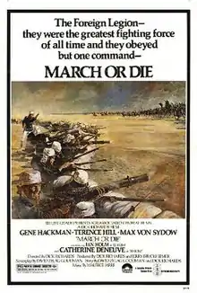 March or Die is a 1977 British war drama film directed by Dick Richards and starring Gene Hackman, Terence Hill, Catherine Deneuve, Max von Sydow and Sir Ian Holm.