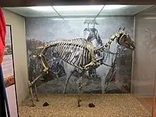 Petre brought the horse back to the United Kingdom and sold him on to Lieutenant-Colonel Angerstein of the Grenadier Guards. Marengo stood at stud (unsuccessfully) at New Barnes, near Ely, at the age of 27. He eventually died aged 38 and his skeleton (minus two hooves) was preserved and later passed to the Royal United Services Institute and is now on display at the National Army Museum in Chelsea, London.[1] One of the remaining hooves was given to the officers of the Brigade of Guards by John Julius Angerstein as a snuff box. The fourth hoof was mounted as a silver inkwell and retained by the family; it is still owned by the family but is now on loan to the Household Cavalry Museum. The Duke of Wellington was asked to disinter his own horse, Copenhagen, to be exhibited alongside Marengo, but refused to do so. Coincidentally, one of Copenhagen's hooves was also later used as an ornament.