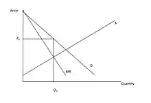[17] Therefore they will produce until the marginal cost curve is greater than the marginal revenue curve, as any products sold after will incur a decrease from the maximum profit, and the price will be set by the demand function at that given quantity.[17]