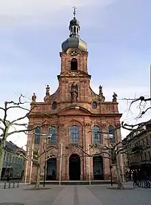 The social distance between members of the margravial family and their subjects was particularly dramatic in the 18th century. As an Imperial general, Louis William received a large income and his wife Sibylle von Saxe-Lauenburg brought a substantial fortune into the marriage. They had claims on more than two million guilder from the Emperor. In 1721, Sibylle personally travelled to Vienna to press her claims to financial support with Emperor Charles VI. She came to an understanding with him and received 750,000 guilder.[27] In the 18th century, the Margravial court mainly used her extensive wealth for court functions, like the erection of government buildings and churches. This created work and led to the creation of a new town at Rastatt. Sustained investment in infrastructure did not occur; Louis William's interest in developing the economy in a mercantilist direction was not continued by his wife and sons. The Court Treasurer Dürrfeld wrote in 1765 that there were open latrines in Baden city and "no princely guest could step foot outside without being surrounded and accosted by a gang of beggars or followed by them on his journey."[28]