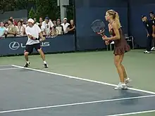 Kirilenko started her preparation for the US Open at the Western & Southern Open in Cincinnati. Seeded 12th, she lost in the first round to Venus Williams.[24] She bounced back into form at the Premier level New Haven Open at Yale. Seeded seventh, Kirilenko reached her second final of the year where she was defeated by second seed Petra Kvitová.[25] Seeded 14th at the US Open, Kirilenko suffered a third-round upset at the hands of Andrea Hlaváčková.[26] In doubles, Kirilenko and Petrova upset the Williams sisters in the third round[27] before losing in the quarterfinal to eighth seeds Nuria Llagostera Vives/María José Martínez Sánchez.